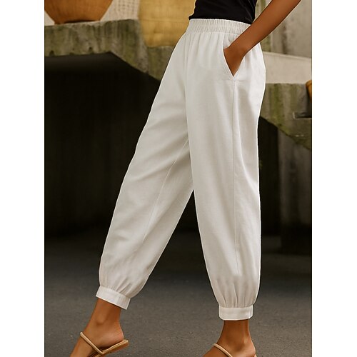 Per donna Pantaloni in cotone e lino Pantaloni da tuta Chinos Vacanza Moda Streetwear Lunghezza intera Vita Alta Semplice Tasca Fascia Elastica Comodo Comodità Morbido Elasticizzato All'aperto