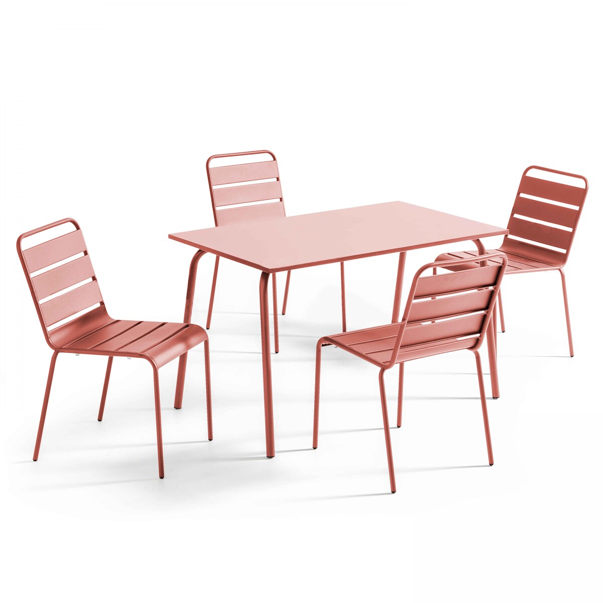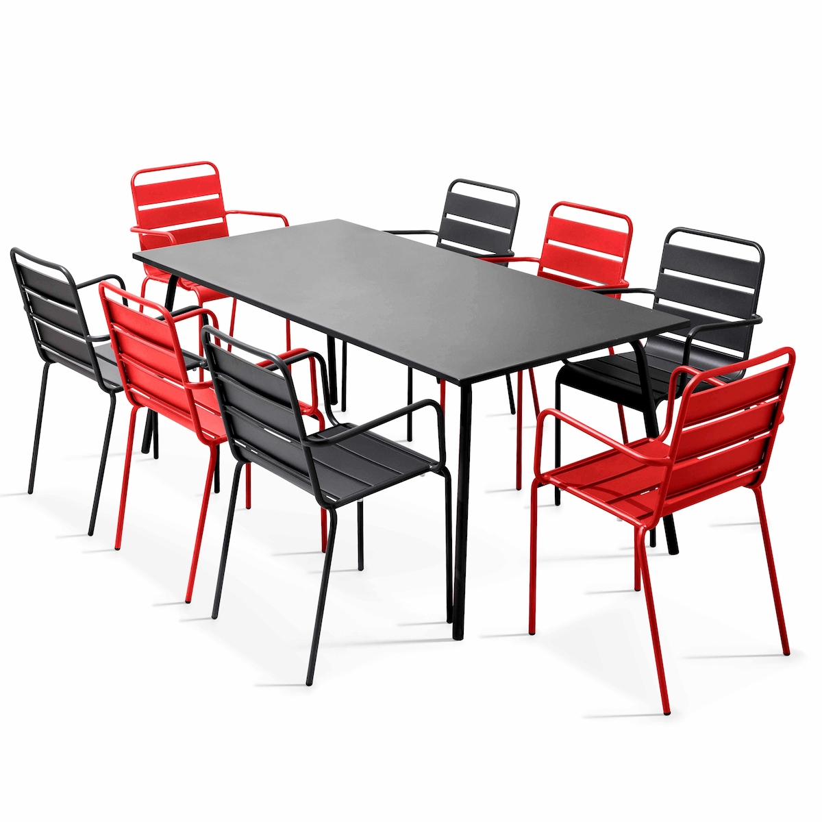 Oviala Business Set aus Gartentisch und 8 Sesseln aus rotem und grauem Metall