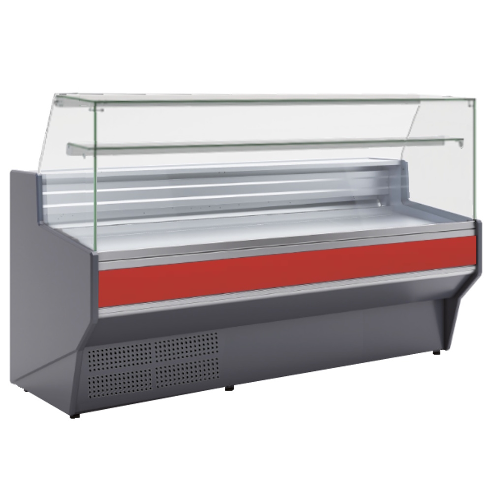 Vitrine-theke mit flachglas für feinkost in rot - 2465x940x1235 mm - 1400 W 230/1V - 24X09249 Eurast