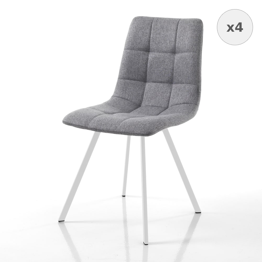 Lot de 4 chaises tissu gris rembourrées pieds acier