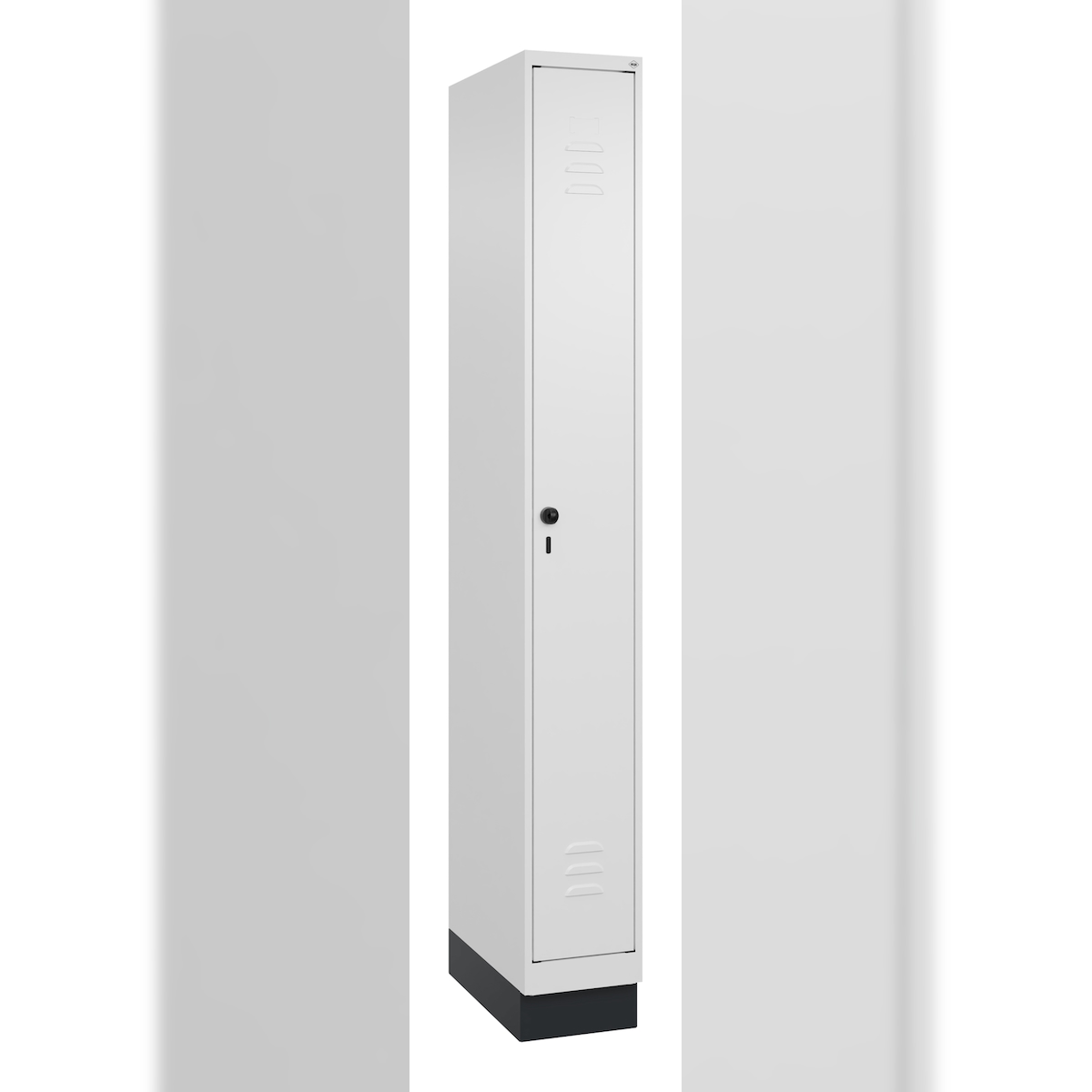 C+P Spind Classic PLUS, Sockel, 1 Abteil, HxBxT 195x25x50cm, Sicherheitsdrehriegel, Verkehrsweiß von PROREGAL
