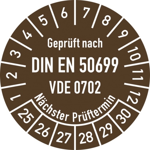 Dreifke® Prüfplakette DIN EN 50699, VDE 0702, 2025-2030, Dokumentenf., Ø 30mm, 10 Stück/Bogen