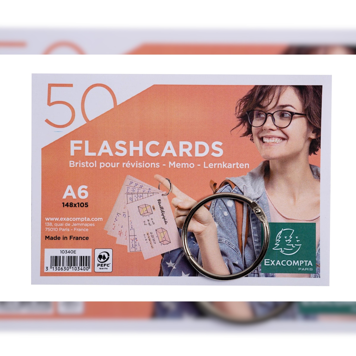 Exacompta 10340E 19x Exacompta, Packung mit 50 Flashcards/Lernkarten und einem Ring, eingeschweißt, liniert, A6 - Farben sortiert