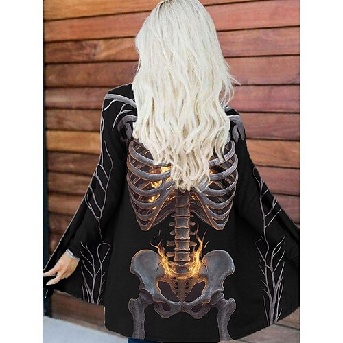 Cappotto invernale donna trench leggero confortevole stampa teschi aperto vintage moda casual vacanza strega collo senza collare taglio morbido maniche lunghe abbigliamento esterno nero bianco