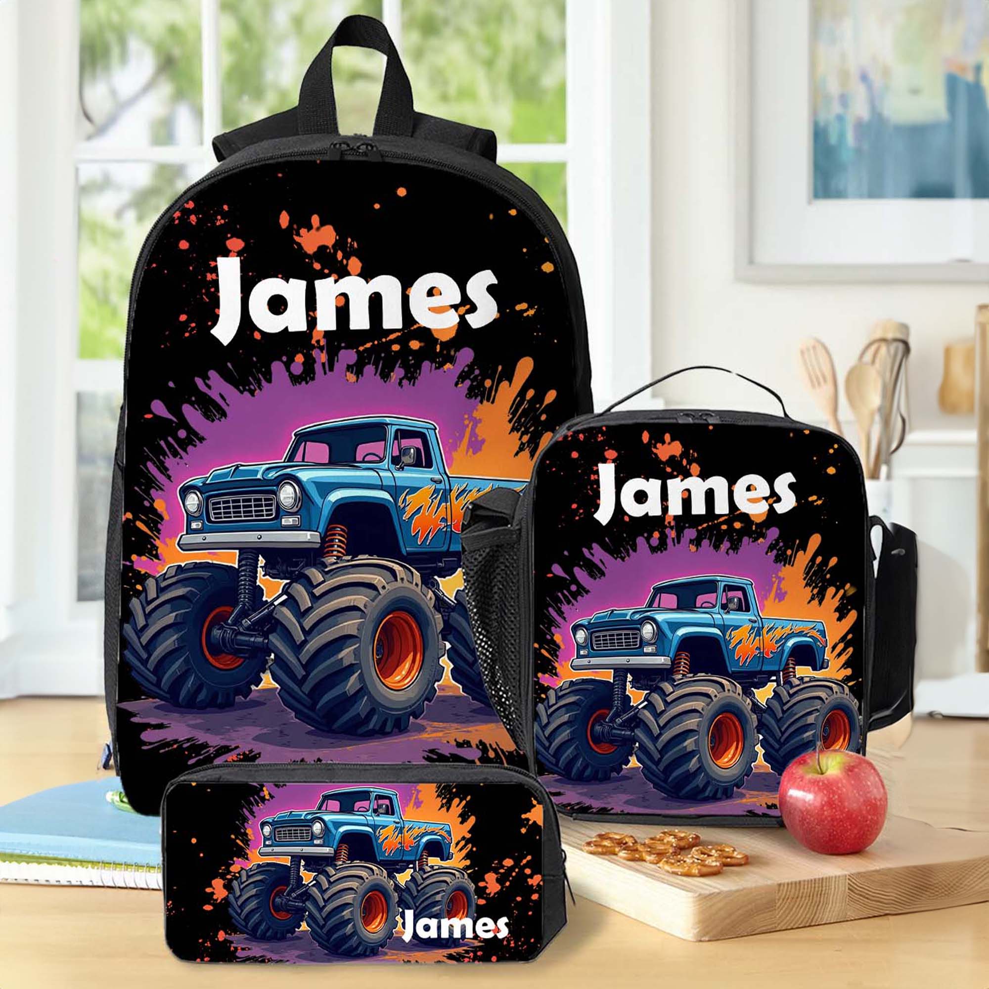 Personalizzato acquerello cartone animato camion zaino pranzo borsa portamatite con nome Back to School regalo di compleanno per ragazzi ragazze studenti