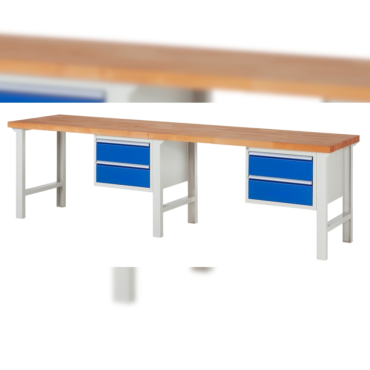 PROREGAL Werkbank Serie 7000 - Modell 7125 | HxBxT 84x300x70cm | 4x Schublade | Schubladenmaße 4x180mm | Lichtgrau | Arbeitstisch Werktisch