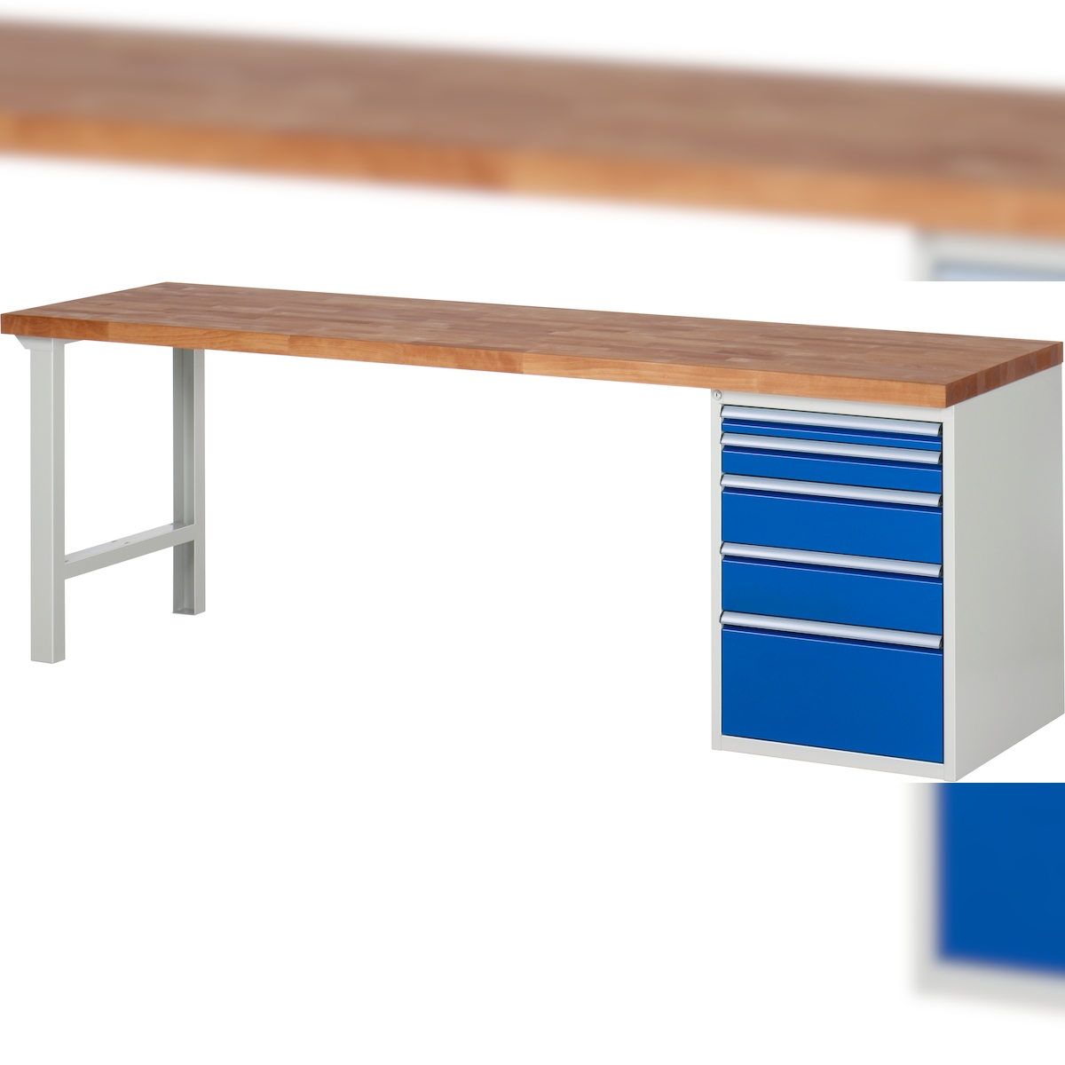 PROREGAL Werkbank Serie 7000 - Modell 7511 | HxBxT 84x250x70cm | 5x Schublade | Schubladenmaße 1x60 + 1x90 + 2x150 + 1x270mm
