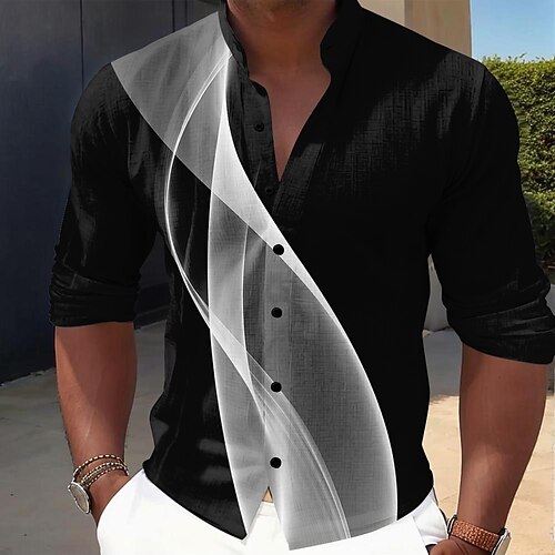 Per uomo Geometrico Sfumatura Linea Camicia Camicia con Bottoni Camicia con colletto alla coreana Manica Lunga Casual All'aperto Vacanza Quotidiano Primavera Autunno Collo alla coreana Colletto alla