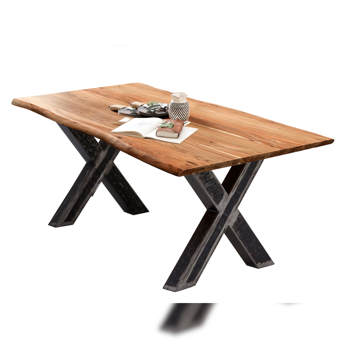 SIT Möbel Esstisch 220 x 100 cm | 56 mm Platte Akazie mit Baumkante | Gestell Metall X-Form | B 220 x T 100 x H 79 cm | 15565-41 | Serie TABLES & CO