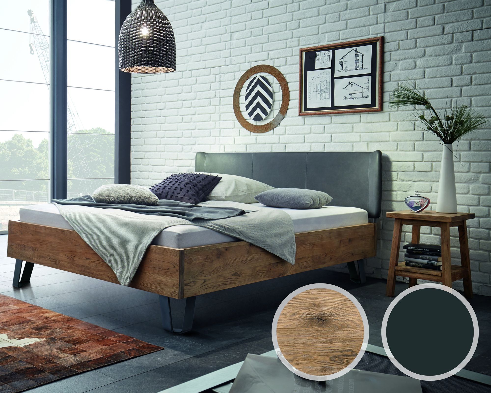 BlackWood »Nova Vita Contour II« Wildeiche Massivholzbett 200x200 cm / Wildeiche stone / Boucle Anthrazit