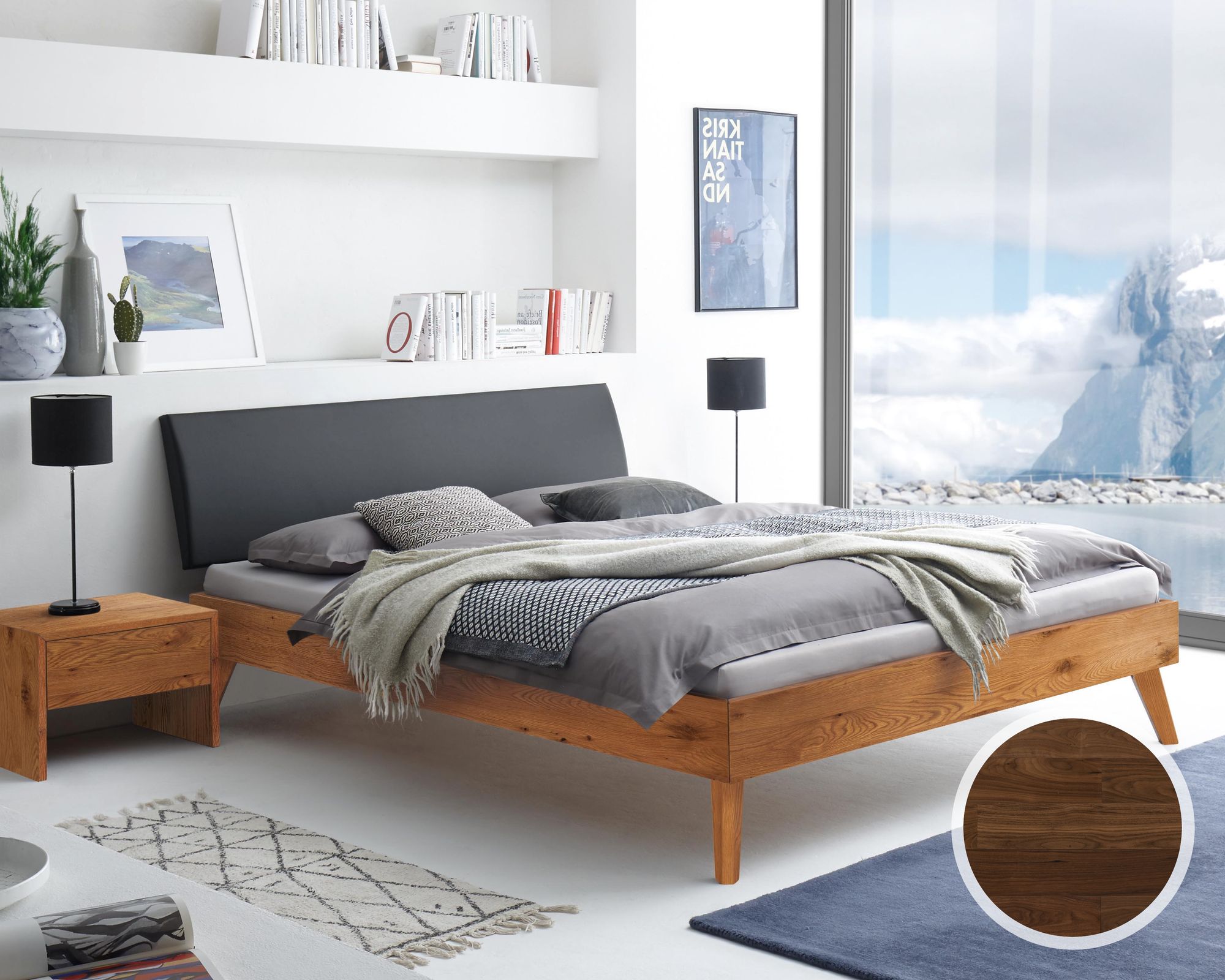 BlackWood »Nova Vita Contour I« Wildeiche Massivholzbett 160x220 cm / Wildeiche rustic / Boucle Off-White