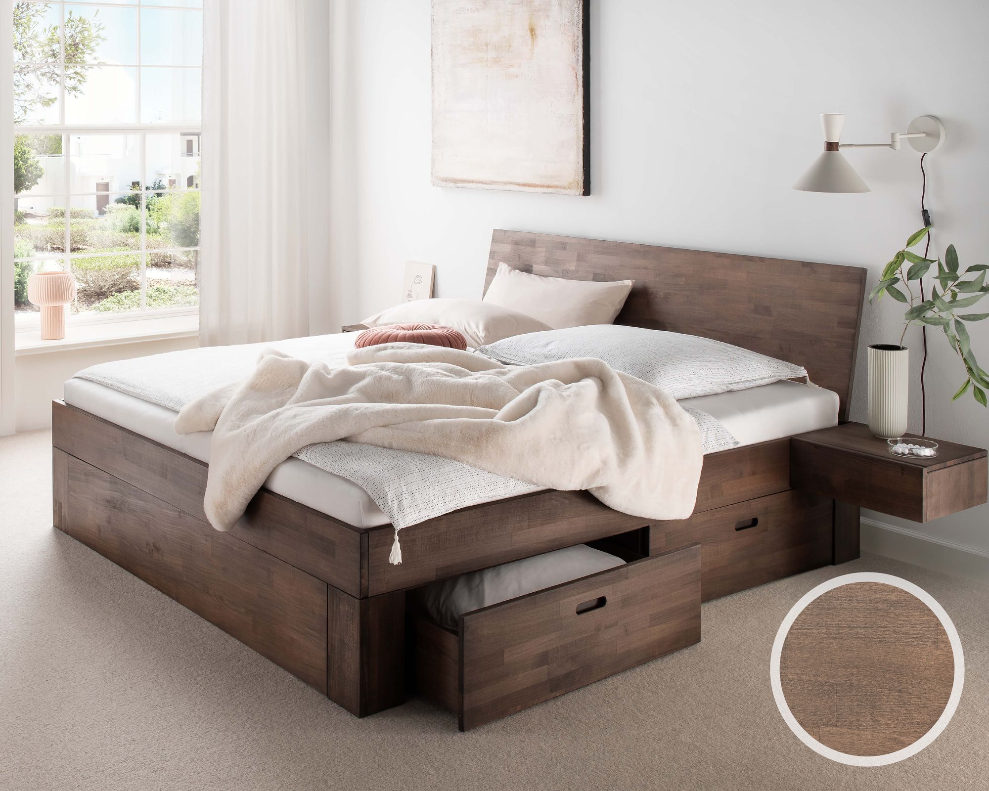 Forestales »Astoria« Massivholzbett IV 180x200 cm / Kernbuche / Kopfteil zweigeteilt / mit Bett-Schublade
