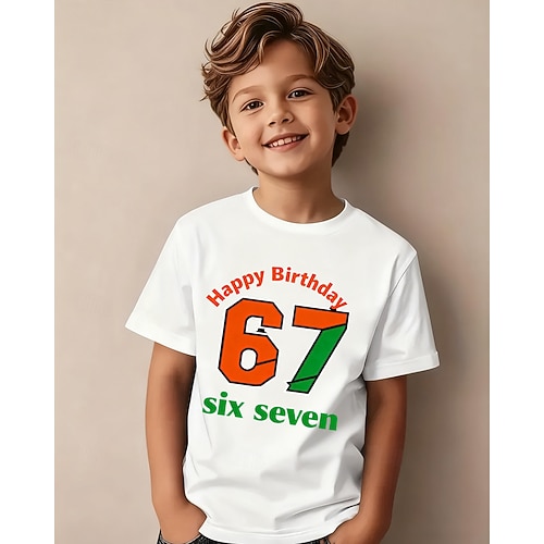 Cotone Bambini Ragazzi Nero Bianco Grafico Gergo divertente 67 Maglietta Blusa Girocollo Manica Corta All'aperto Abbigliamento Quotidiano Moda Streetwear Designer Stampa Estate