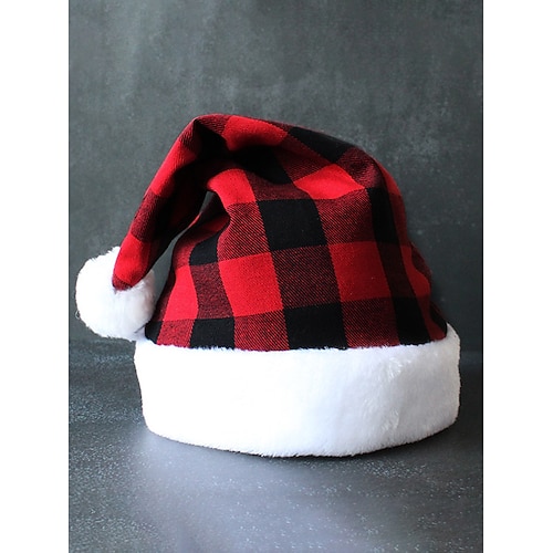 cappello natalizio unisex, in poliestere e peluche con motivo scozzese rosso e nero, perfetto per le feste e le festività invernali
