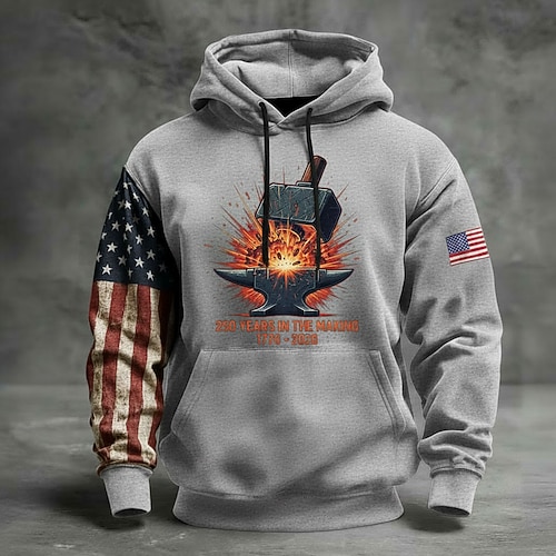 250° anniversario dell'America Per uomo Felpa con Cappuccio Felpa con cappuccio Festival Nero Blu marino Verde militare Grigio Stampa 3D Inverno Primavera Autunno progettista S M L XL XXL XXL