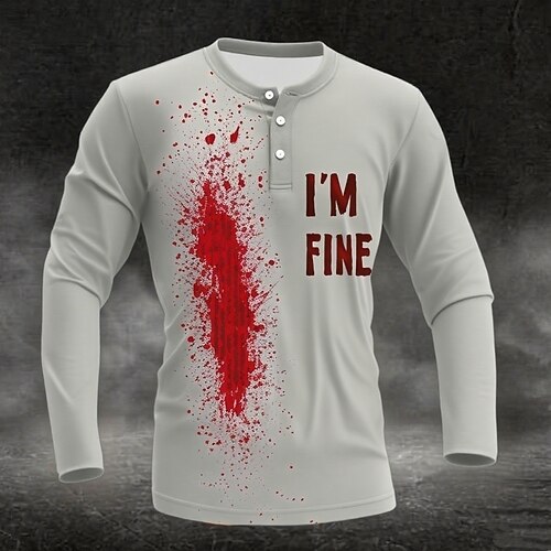 Camicia da uomo Costumi Macchie di Sangue Divertenti Macchie di Sangue IO STO BENE Camicia Henley Maniche Lunghe Moda Carina Quotidiana Casual Vacanza Autunno Primavera e Autunno Bianca Verde Chiaro