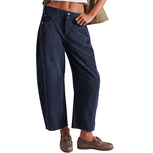 Per donna Pantaloni in velluto a coste Pantaloni Eleganti Dritto Streetwear Casual Lunghezza intera Naturale Semplice Rivetto Cerniera Confortevole Streetwear Ferie Abbigliamento quotidiano Nero Rosa