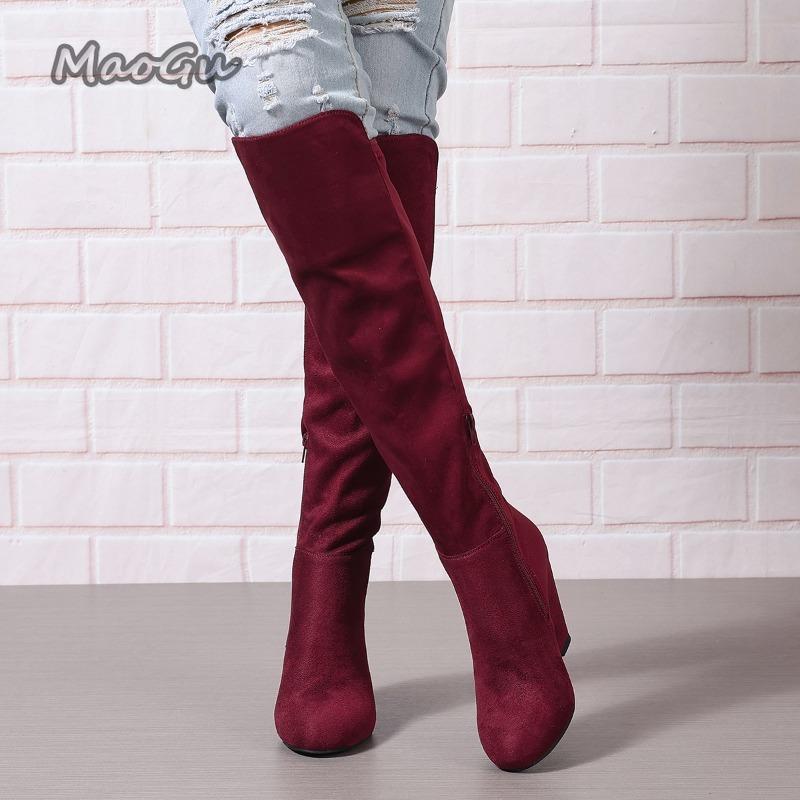 Women Autumn Winter Knee High Boots Wedge Boots for Women Plus Size Suede Elastic Women's Long Botas Feminino Botas Para Mujer cm burgundy