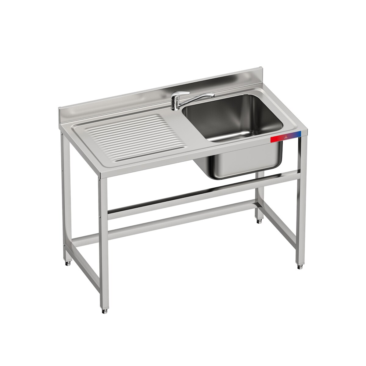 Gasfrit – Unterbau-Spüle, 1 Becken und 1 Abtropffläche, Armatur mit Doppelwasseranschluss, 1200 × 600 × 850 mm