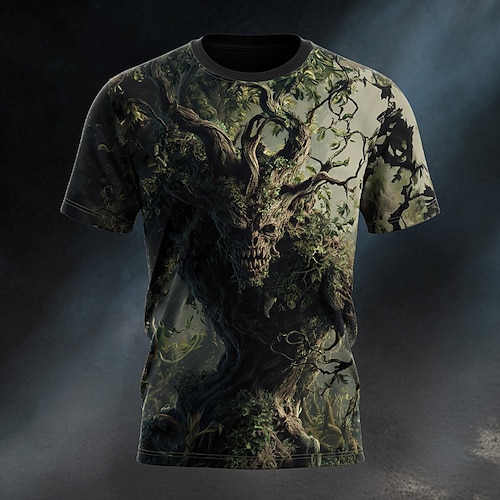 Per uomo Illusione ottica 3D Demone dell'albero Maglietta Manica Corta maglietta Stampa 3D Girocollo Camicia Esagerato Designer Orrore Feste Streetwear Ferie Blu Verde scuro Estate Primavera Tutte le