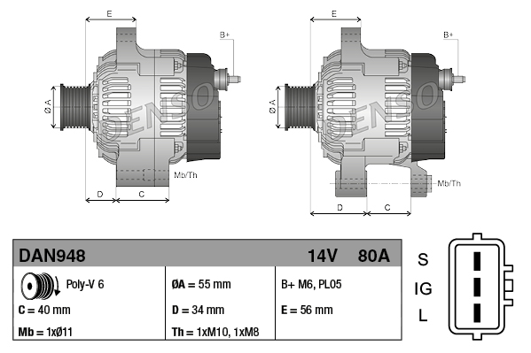 DENSO Generator 14V 80A für TOYOTA 27060-22160 27060-22180 27060-22070 DAN948