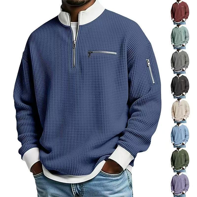 Herren Color Block Kapuzenpullover mit Stehkragen und Reißverschluss - Sportmode Langarm Freizeitkleidung cm