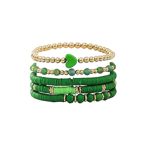 set di braccialetti boho con perline acriliche da donna, braccialetti elastici multicolori con ciondolo a cuore, braccialetti leggeri impilabili a strati per regali di San Valentino e da indossare tutti i giorni