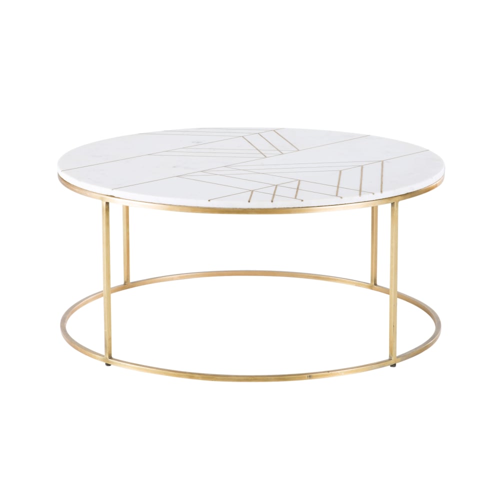 Table basse ronde en marbre reconstitué blanc et fer doré D90