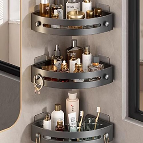 Mensola triangolare per bagno in ABS grigio canna di fucile, senza foratura, portaoggetti angolare per doccia, supporto da parete per WC, lavandino, mobiletto per lavabo, organizer per bagno