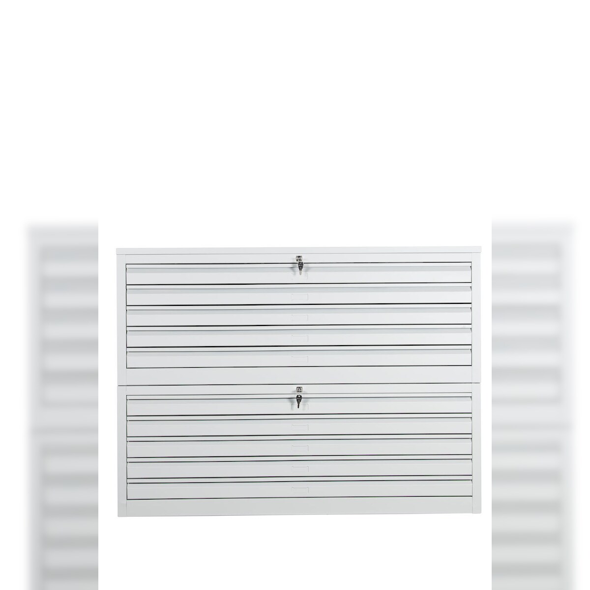 PROREGAL Flachablagenschrank Chinchilla | 10 Schubladen | Schwanenhalsgriff | HxBxT 105x140x95 cm | Metallabdeckplatte | Grau