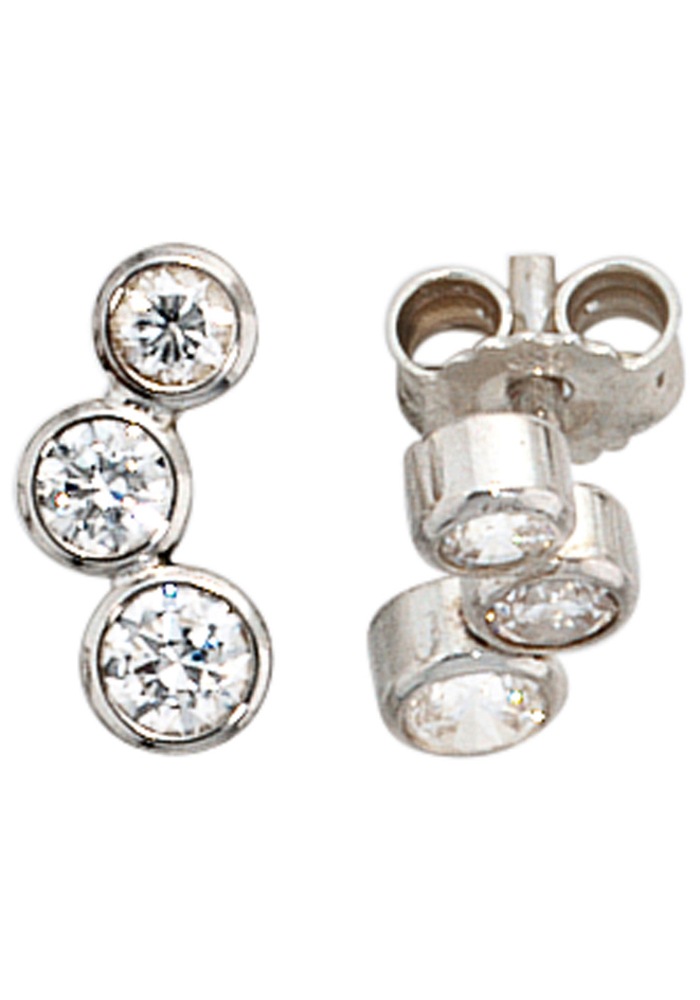 Paar Ohrstecker JOBO, silber (silber 925), Ohrringe, Damen, Silber 925 (Sterlingsilber), 925 Silber mit 6 Zirkonia