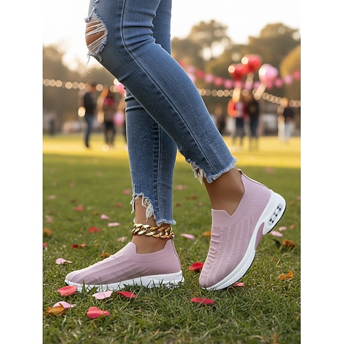 sneakers slip-on rosa da donna: scarpe comode e casual con design in maglia per San Valentino, eventi all'aperto e uso quotidiano