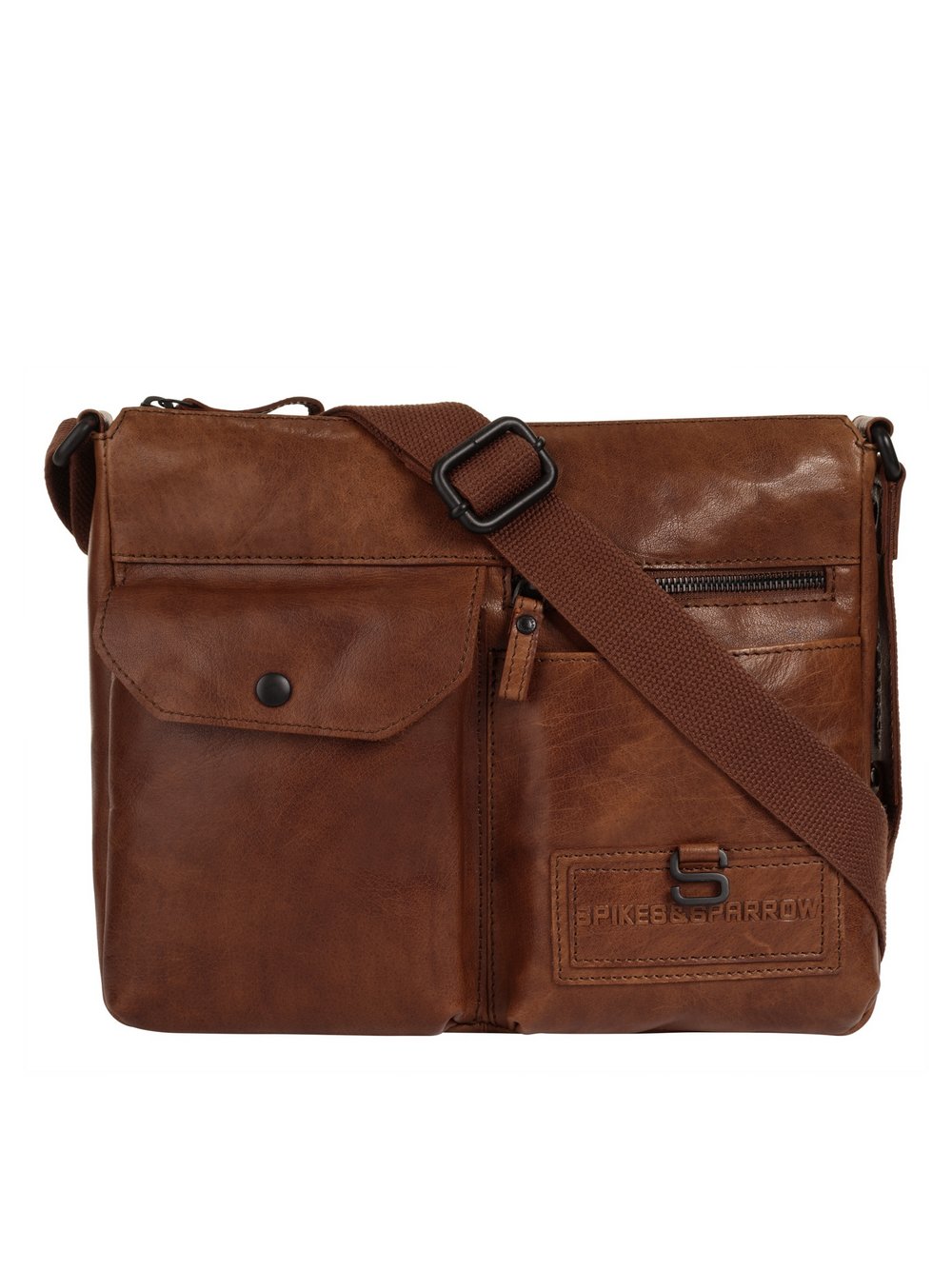 Umhängetasche SPIKES & SPARROW, Damen, Gr. B/H/T: 24cm x 24cm x 3cm onesize, braun (cognac), Leder, unifarben, leicht glänzend, Taschen, echt Leder