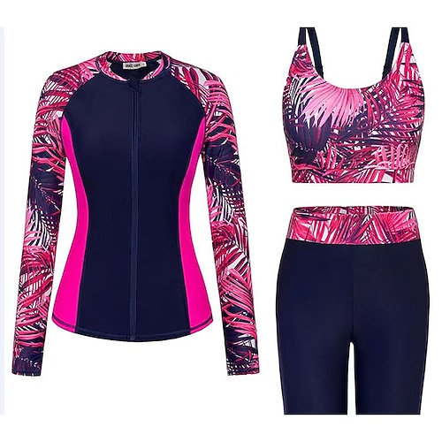 Per donna Top sottomuta Costume da bagno con stampa floreale 2 pezzi Floreale Tropicale Protezione UV Elastico Manica Lunga Costume da Bagno Surf Spiaggia Vacanze Estate