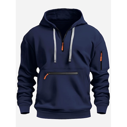 Per uomo Felpa con cappuccio Felpe con cappuccio e zip Felpa con cappuccio tattica Nero Blu marino Cammello Grigio chiaro Grigio scuro Con Cappuccio Semplice Tasca Mezza cerniera Tasca Frontale