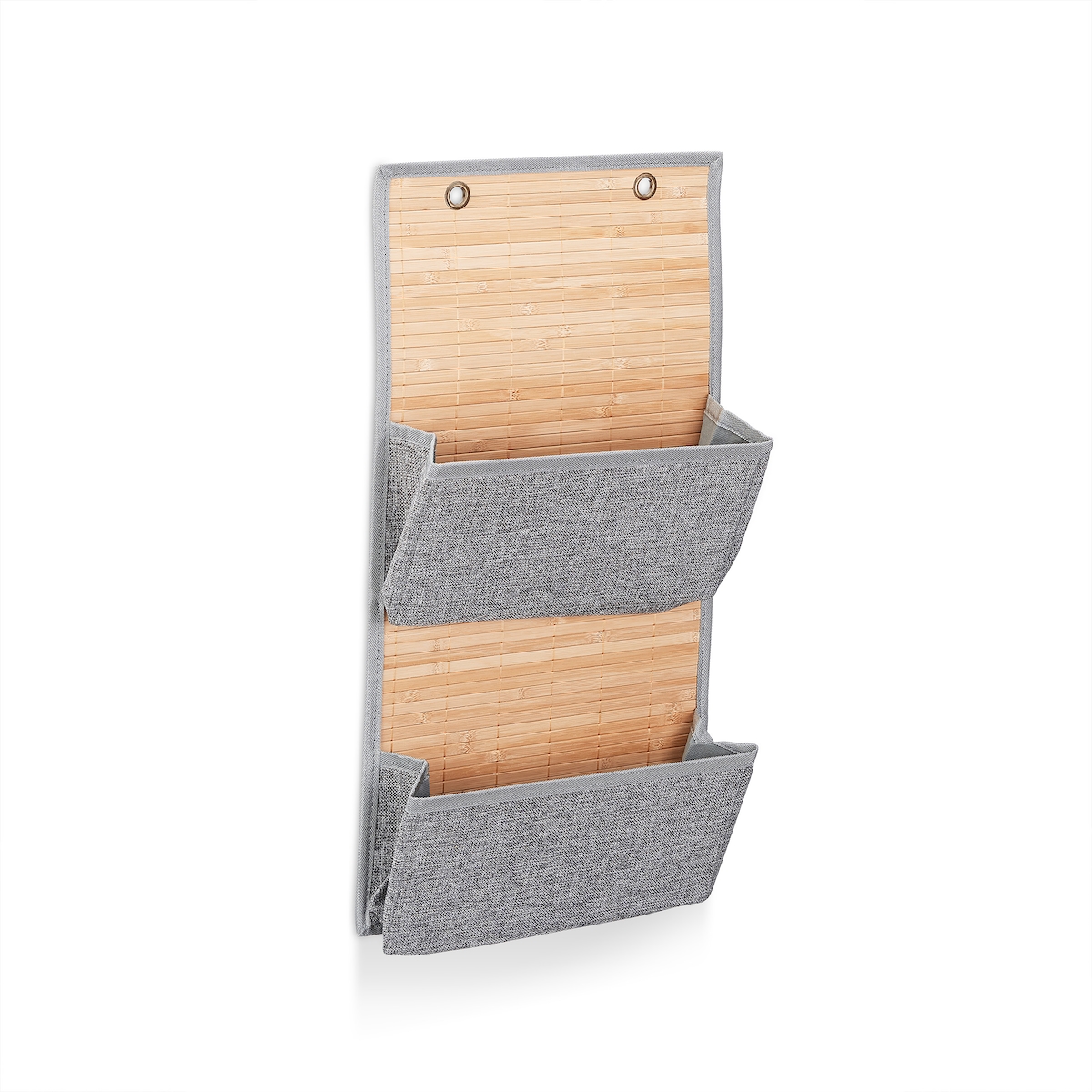 Relaxdays Hängeaufbewahrung Bad und Flur, 2 Fächer Türgarderobe 62 x 33 x 12 cm H x B x T, Bambus und Stoff, grau
