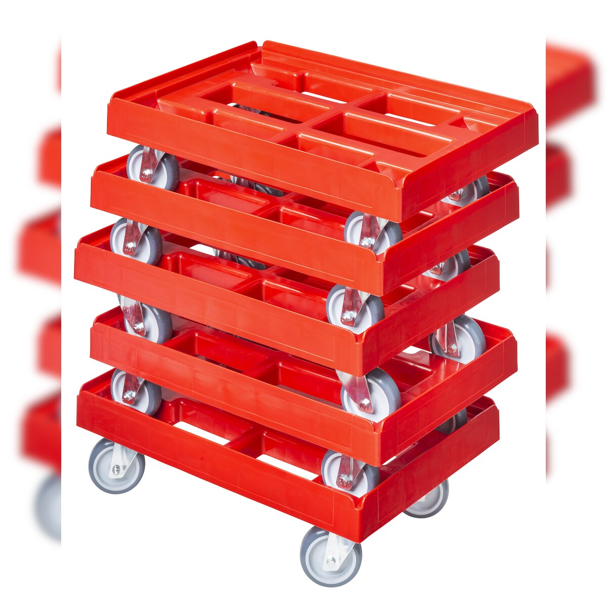 5 Stück Transportroller Typ B für Kisten 60 x 40 cm mit 4 Lenkrollen in rot