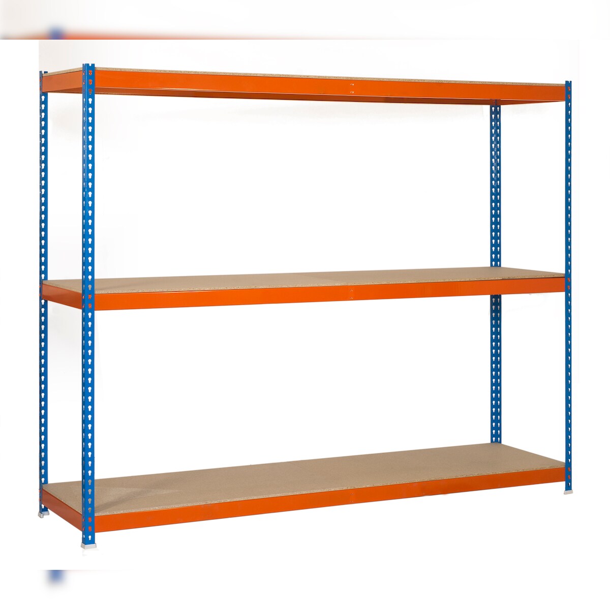 SimonRack Simonforte Spanplatte 3 Fachböden mit 600 kg pro Ebene in BLAU/ORANGE/HOLZ Farbe 1500x1500x600 mm (Höhe x Länge x Breite)
