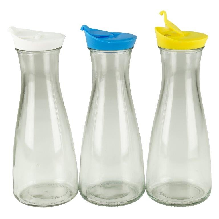 GVK ECO Glaskaraffe mit Deckel 1 Liter 3 Stück Weiß/Blau/Gelb