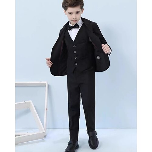 Completo da fedi nuziali per bambini, 3 pezzi, blazer gilet pantaloni da ragazzo, abito formale, casual, da esterno, da festa, alla moda, fresco, basic, tinta unita, tasche, bottoni, blu, nero,