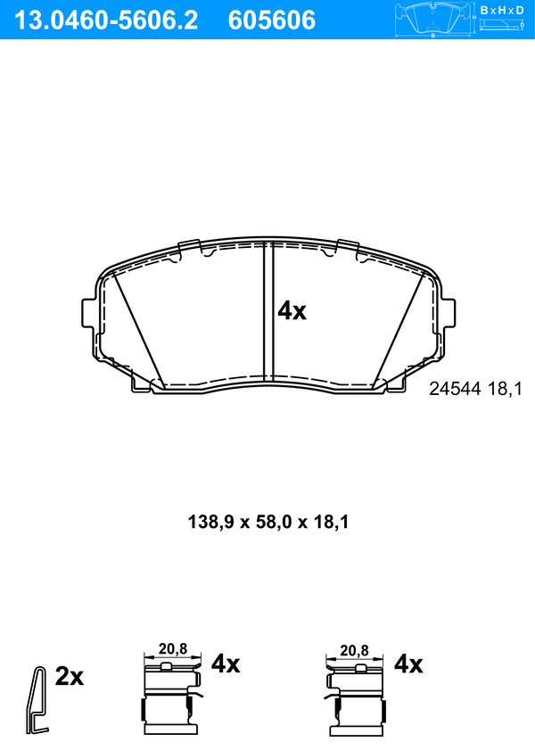 ATE Bremsbelagsatz, Scheibenbremse 13.0460-5606.2 vorne rechts links mit Zubehör für MAZDA L2Y6-33-23 EHY4-33-28Z KCYR-33-28Z