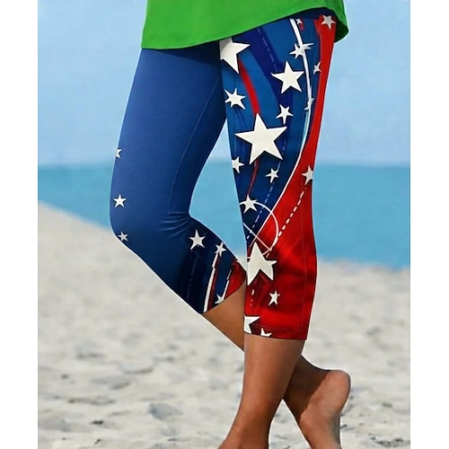 Pantaloni Capri Patriottici del Giorno dell'Indipendenza Leggings Donna Vacanza Hawaiana Stile Capri Vita Media Pantaloni Grafica Bandiera Nazionale Comfort Elastico Outdoor Vacanza Formale Blu Bianco