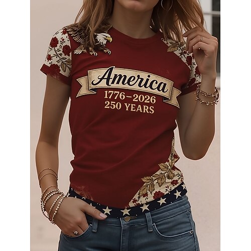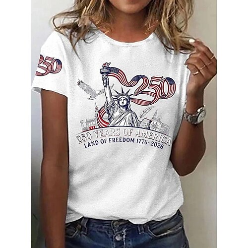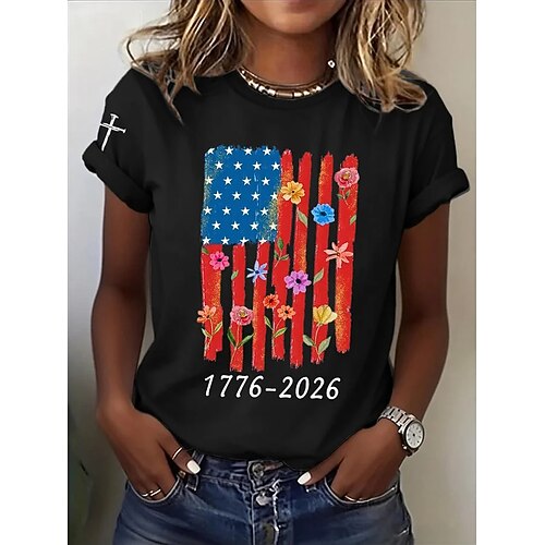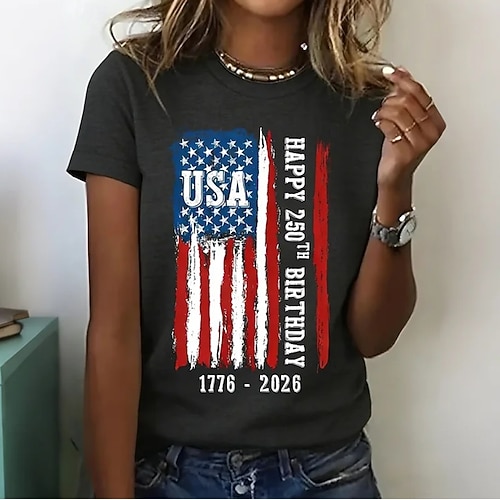 Maglietta patriottica per il Giorno dell'Indipendenza Donna 250° Anniversario Americano Maglietta Grafica Bandiera Vintage Elegante Classico Manica Corta Girocollo Collo Rotondo Stampa Quotidiana
