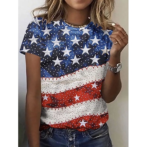 Giorno dell'Indipendenza Americana Per donna Maglietta Stampato Grafico Bandiera Elegante Classico Casual Manica Corta Girocollo Top Regolari Quotidiano Blu Rosso Rosso / blu Estate Primavera
