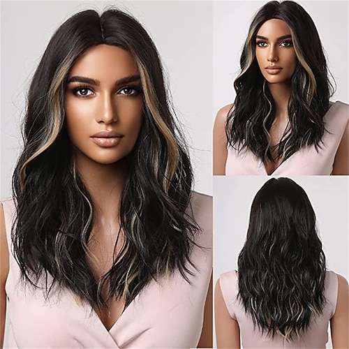 parrucche caschetto castano per donna biondo mette in risalto la parte centrale dei capelli sintetici corti e lisci