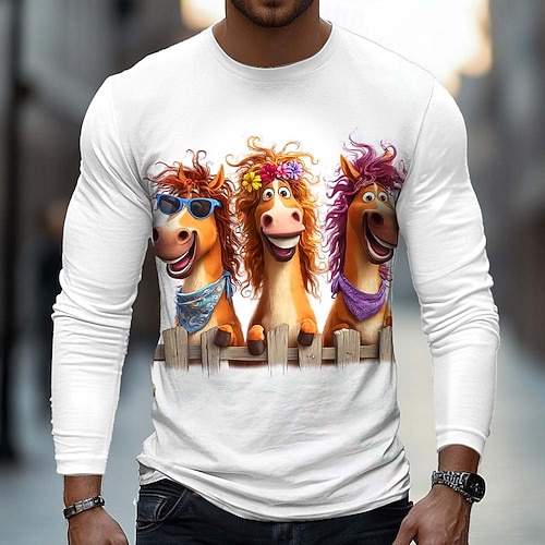 Per uomo Animale Divertente Zebrato Maglietta Manica Lunga maglietta Stampa 3D Girocollo Camicia Moda Essenziale Casuale Quotidiano Streetwear Blu Bianco 1 Bianco 2 Estate Primavera Abbigliamento S M