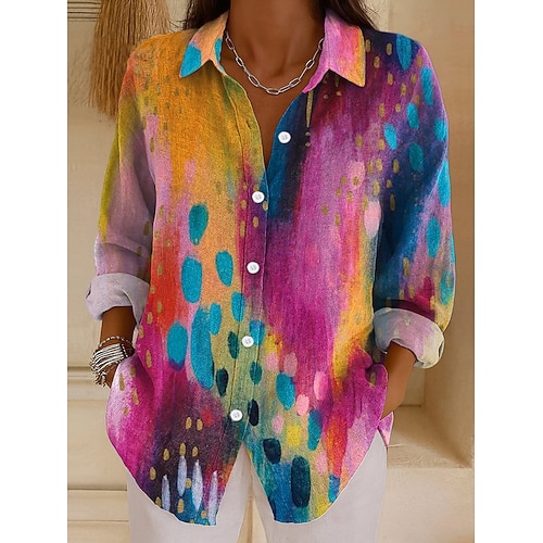 Per donna Camicia Camicia da lavoro Grafico Astratto Elegante Casual Manica Lunga Colletto a Camicia Top Regolari Lavoro Abbigliamento da sera Quotidiano Glitter Rosa Blu Viola Fucsia Arancione