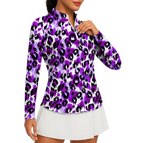 Per donna Animale Leopardo Top Polo da golf Maglia da tennis Manica Lunga Stampato Zip a un quarto Pullover Protezione UV Elastico Traspirante Tennis Golf Pickleball Collo alla coreana Collo con zip