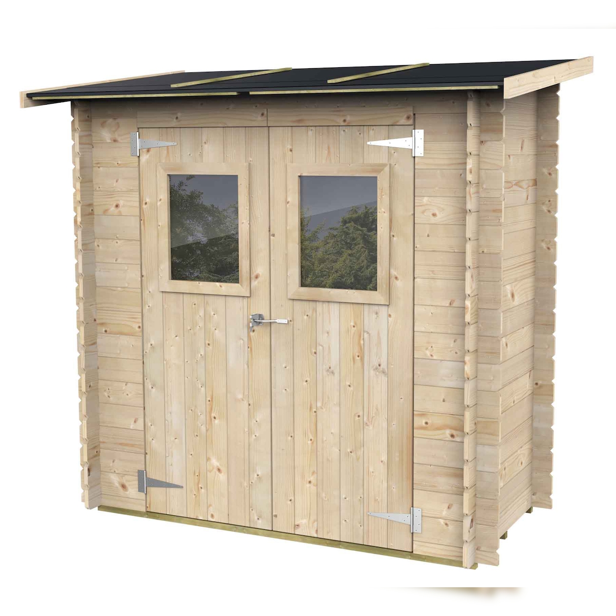 MAESTRO FERRETERO Angebautes Gartenhaus Bh19 Hobby Monopente 198x98 aus naturbelassenem Fichtenholz 19 mm mit Doppeltür und Fenster, Dach