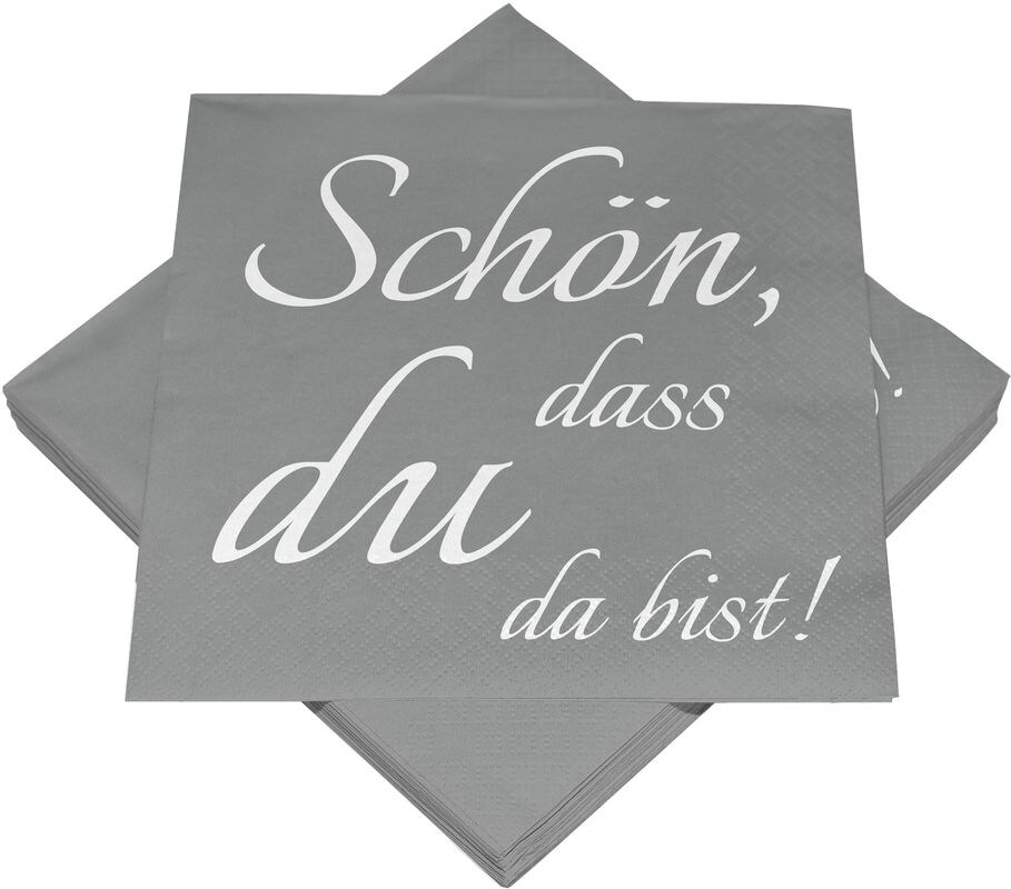 20 Servietten grau `Schön, dass Du da bist` 33 x 33 cm